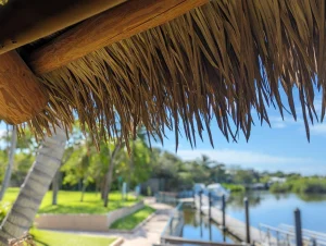 While fire risk itself was not a primary concern, local fire code required that the natural thatch be sprayed with fire-retardant chemicals. In Florida’s climate, these treatments degrade quickly due to UV exposure, humidity, and rainfall.